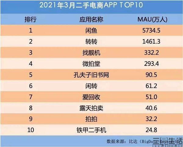 根据《2019年度中国二手电商发展报告》显示,阿里旗下闲鱼所渗透的市场份额为70.7%,58旗下转转这一数据为20.2%,而爱回收则不到10%。而在比达咨询公布的数据中表明,在二手3C领域,2021年3月转转的MAU为1461.3万,找靓机MAU为332.2万,爱回收和拍拍的MAU则分别为51万以及32.2万。因此继爱回收合并拍拍成功上市,以及转转合并找靓机入驻闲鱼的情况下,刚刚上线的鲸置也面临着强敌环伺的局面。