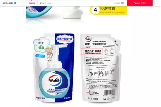 青眼在威莱天猫旗舰店、京东旗舰店以及威露士京东旗舰店上看到,上述“威露士 泡沫抑菌洗手液”均为正常销售状态。其中,威莱天猫旗舰店该产品套装总销量显示已超46万件。此外青眼还发现,在“威露士泡沫抑菌洗手液补充装”的产品包装上,也印有“魔术泡沫 易冲洗 用量只是普通洗手液的一半#”的宣称。