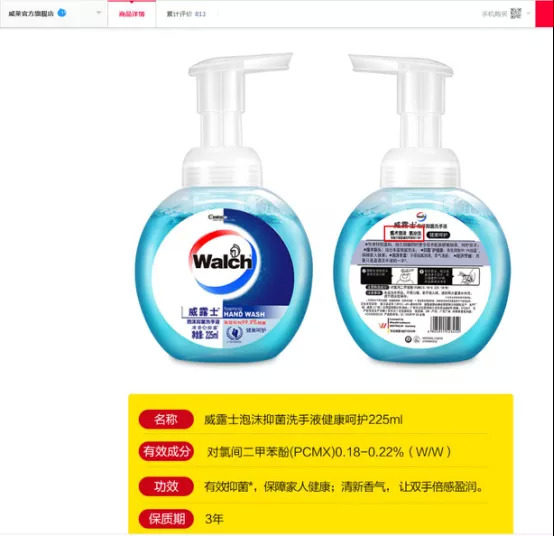 值得一提的是,目前在威露士洗手液、消毒液等产品的商品详细页面上,均已上传了产品的分析检测报告。