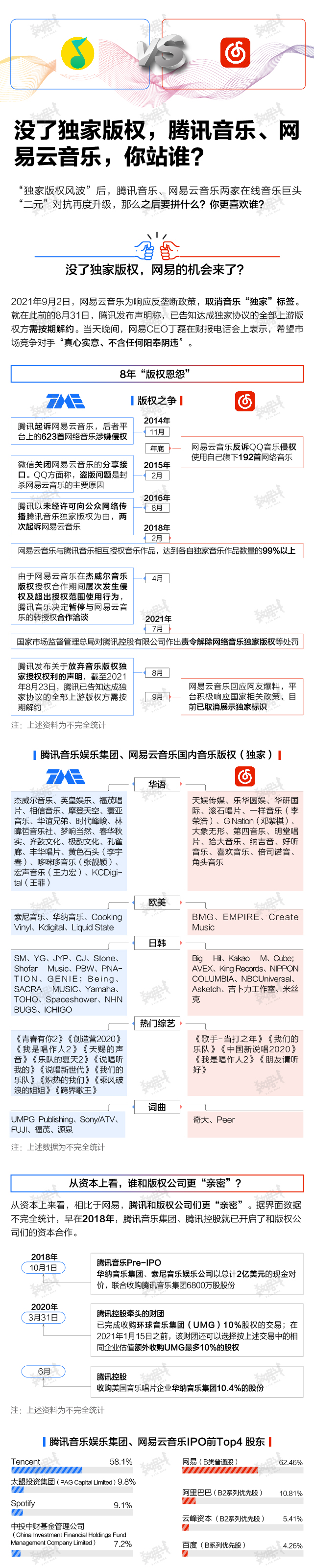 数据 | 没了独家版权,腾讯音乐、网易云音乐,你站谁?