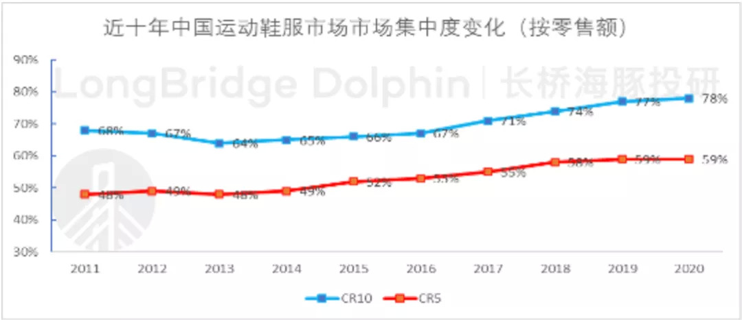 不同于一般时尚类品牌因为消费者的品味变得太快,功能性(运动)服装护城河更为明显,李宁、安踏(FILA)、特步等运动服装品牌,主要的护城河就是科技(运动)+营销资源上的心智占领,功能性品牌CR5、CR10都占比较高。