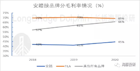 此后安踏依靠FILA吃到了中高端运动服鞋市场的蛋糕。受益于中高端运动时尚定位和直营模式的经营,FILA品牌溢价较高,19年安踏体育为回应浑水做空,首次公布了FILA相关的核心财务数据,其毛利率基本维持在70%的高位。