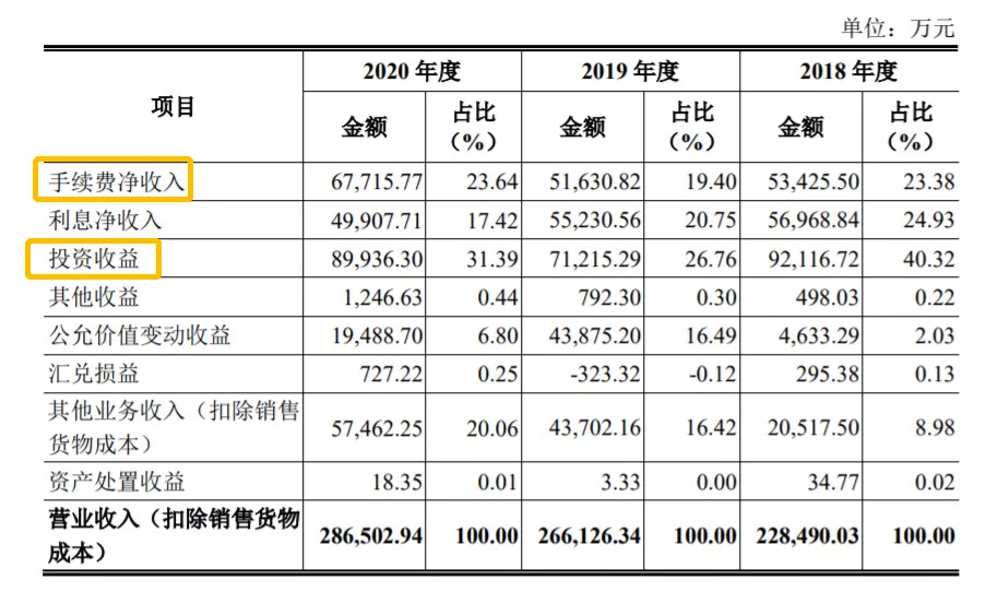投资收益方面,据历年财报数据,利息收入是永安期货营业收入的重要组成部分。2018年至2020年,该公司利息净收入为5.70亿元、5.52亿元、4.99亿元,占营业收入的比例分别为24.93%、20.75%、17.42%。下图也可以看出,手续费及投资收益是永安期货最重要的收入来源。