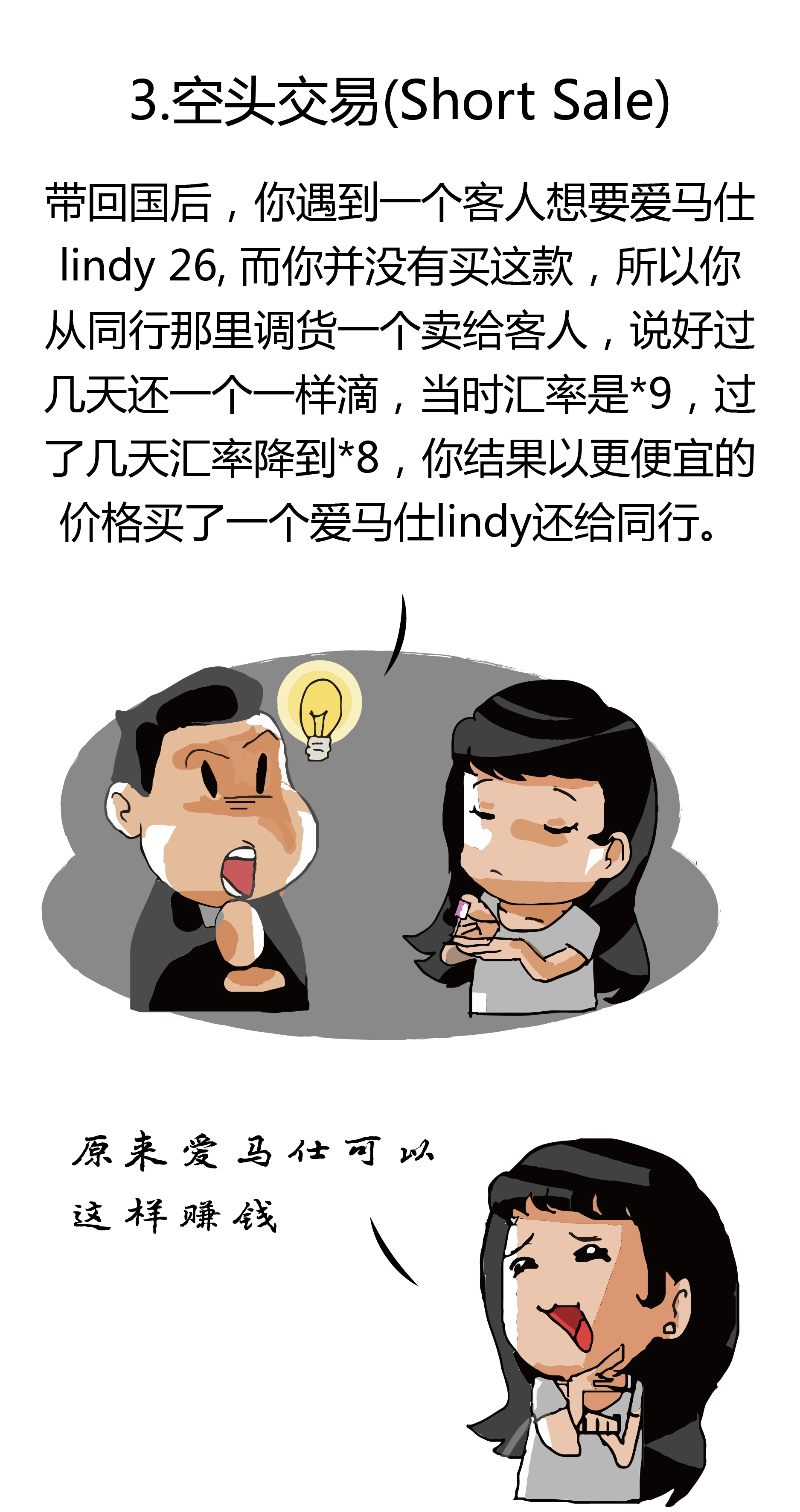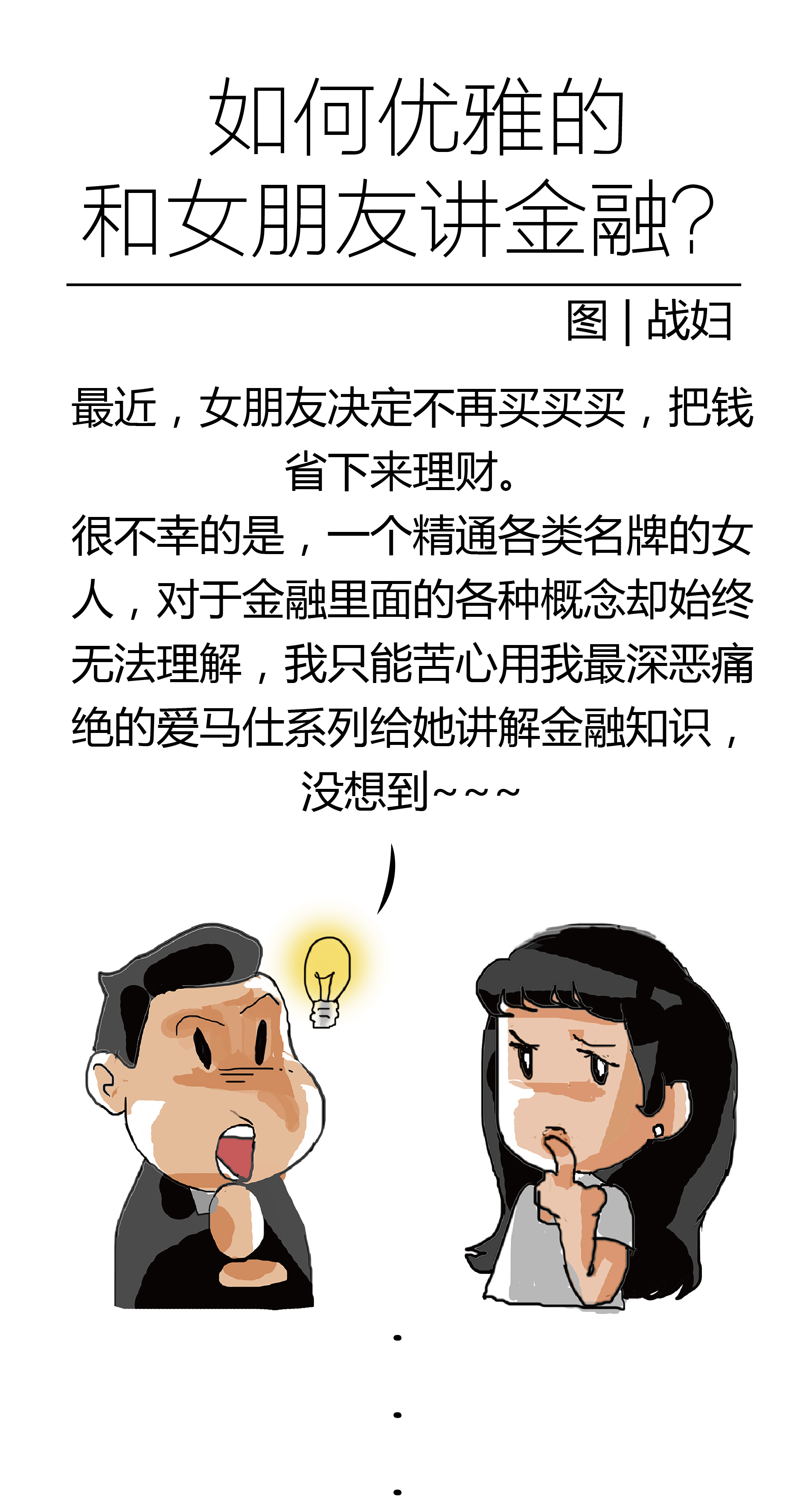 一个精通各类名牌的女人,对于金融里面的各种概念却始终无法理解,我只能苦心用我最深恶痛绝的爱马仕系列给她讲解金融知识。