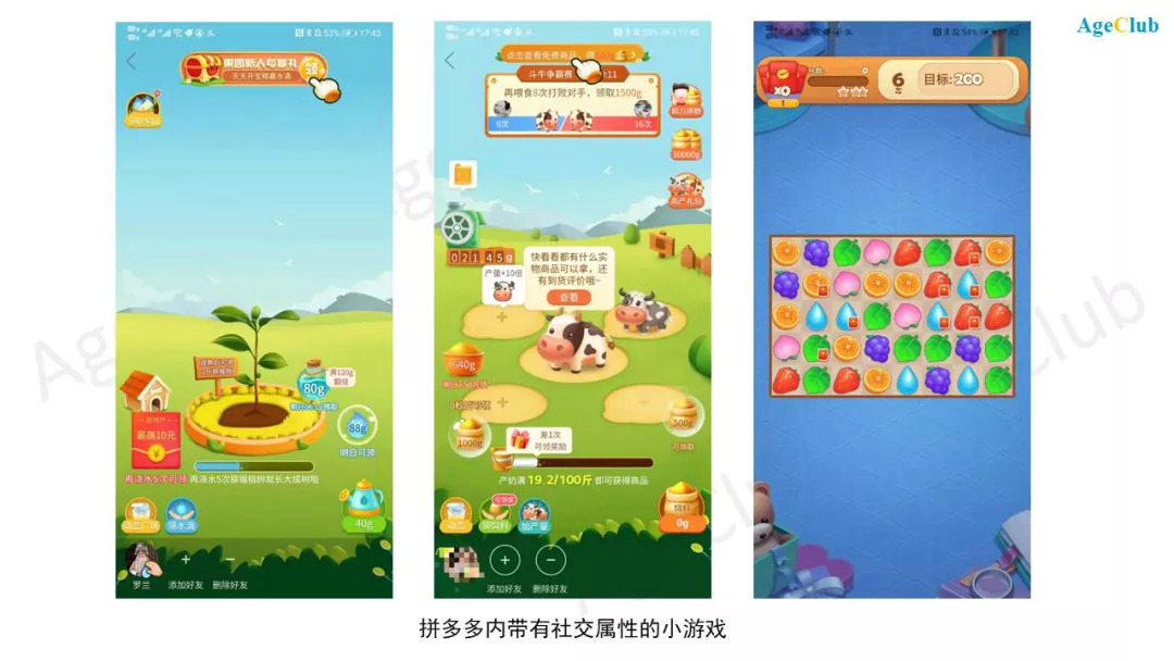 一位60多岁的奶奶告诉AgeClub,自己从不在网上买东西,这时,四五岁的孙女则跑过来说,奶奶之前经常玩拼多多的游戏。