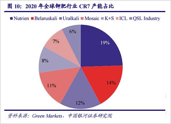 不过需要强调的是,尽管BPC解体,但钾肥行业的寡头垄断格局没有改变,而且近些年来的控制能力在不断增强。时至今日,全球主要有七大钾肥生产公司,CR7的全球市占率自2010年以来一直维持在75%以上,2020年达到77%。