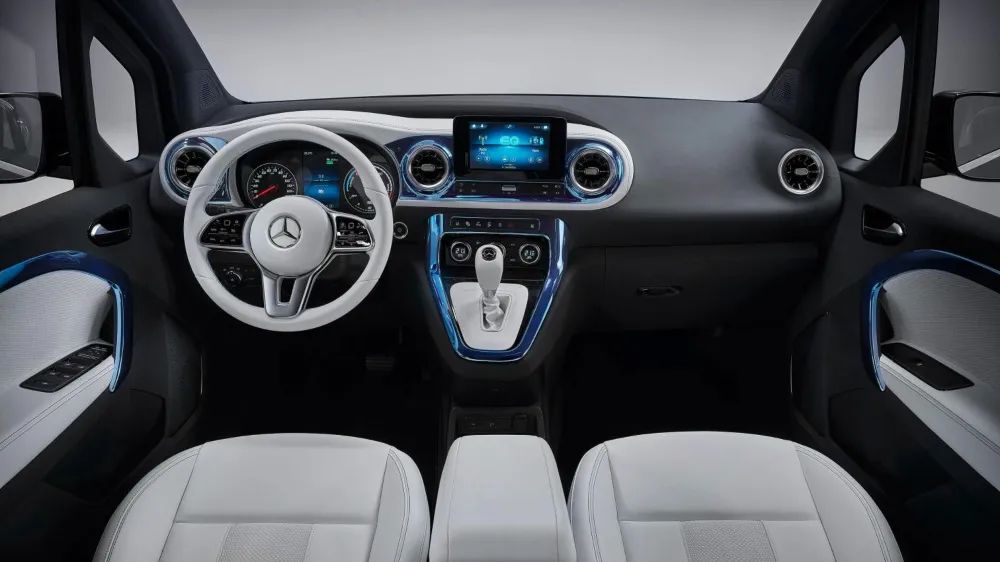 奔驰EQT概念车的整体造型与奔驰全新Citan相似,车辆的长、宽、高分别为4945/1863/1826mm,车身两侧配有电动侧滑门。