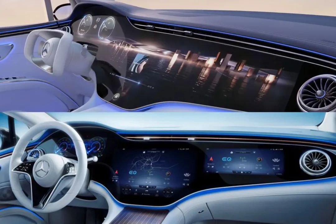 迈巴赫EQS SUV(上)与奔驰EQS(下)中控台对比
