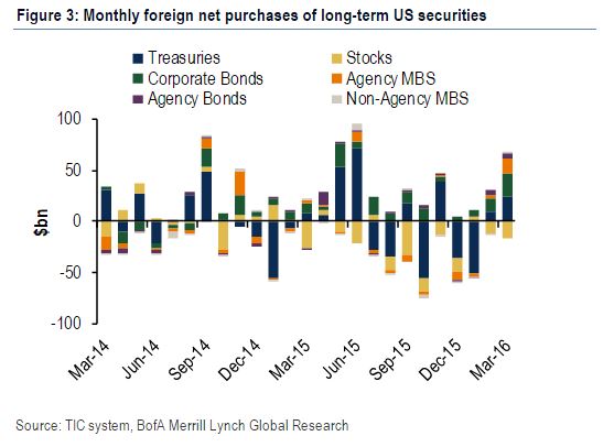 随着国外投资者逃离推行负利率政策的欧洲与日本,他们对美国国债的需求在近期有所增加,因为与同等信贷质量的德国与日本相比,美国提供的债券收益率更高。