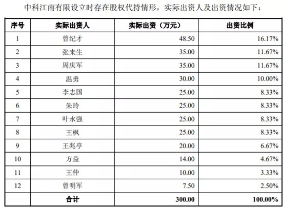 对于代持,中科江南给出的解释是,考虑到创业初期人员相对不稳定,避免人员变动导致工商登记频繁,因此,刘萍、赵方兴代曾纪才、张来生等中科江南有限的实际出资人持有中科江南有限股权。