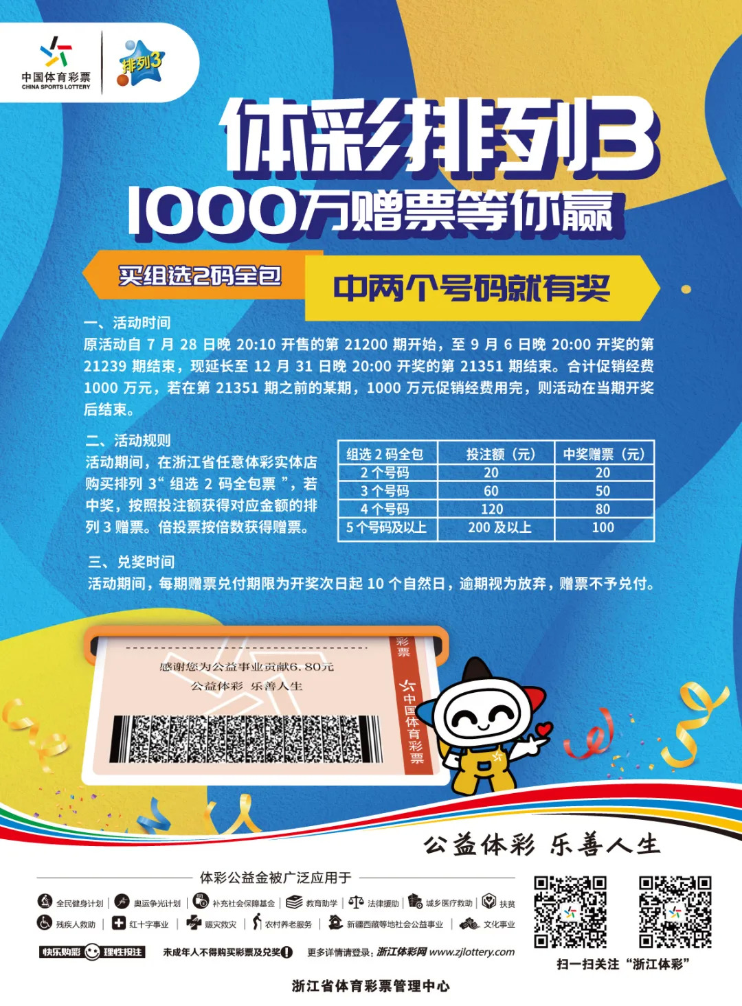 7月底,浙江体彩开启“排列3”千万赠票活动