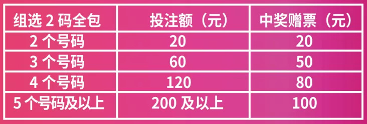 活动期间,在浙江省任意体彩实体店购买“组选2码全包票”,若中奖,按照彩票投注额获得对应的“排列3赠票”。倍投票按倍数获得赠票。