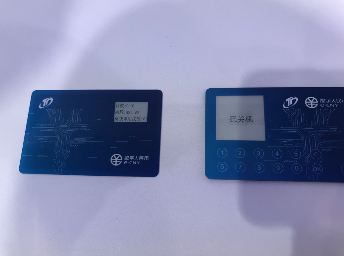 以上卡式钱包外表与普通银行卡接近,可视钱包则增加了一寸见方的电子墨水小屏,能显示交易金额、余额信息,刷卡消费时一目了然;不过,令界面新闻记者最感惊奇的当属纸质钱包,该钱包触感与视觉效果都与普通的纸张无异,外表看起来并无任何科技成色,但经工作人员演示,同样可以完成双离线支付功能。
