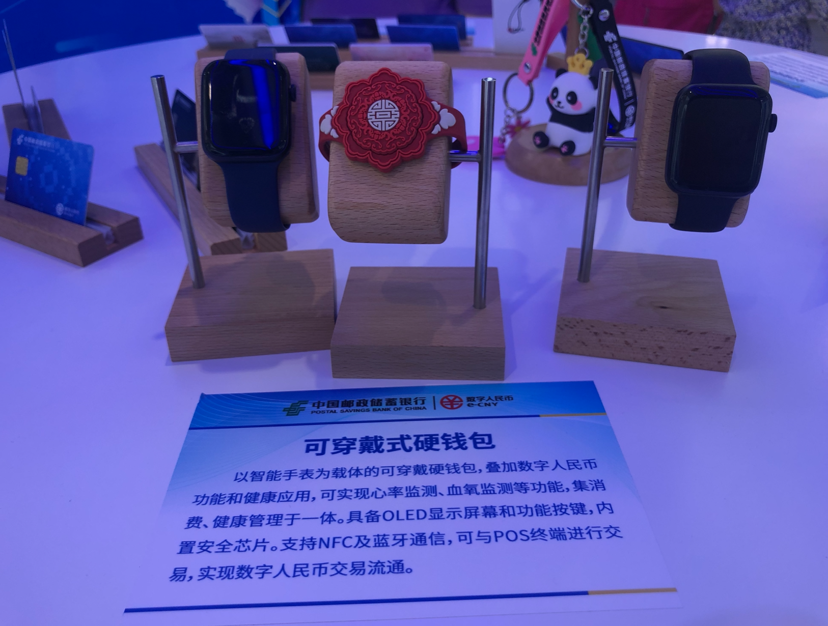 不过数字人民币的魅力不止在于支付方式的便捷,此次服贸会上,各类数字人民币硬件钱包则向参观者展示了载体的多样化。