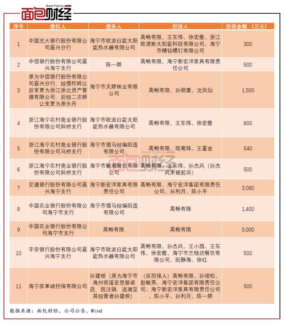 高畅有限涉诉的11起担保的担保金额合计1.44亿元。其中最大的一笔担保金额为5000万元,债权人为中国农业银行,债务人为高畅有限自身。2016 年12月,高畅有限通过拍卖光华大厦相应房产得以偿还。