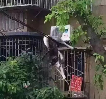 据网友爆料,17日,重庆渝中区人和街附近,一只哈士奇在顶楼愉快的玩(fa)耍(feng)时,不慎失足坠楼……幸运的是,这只二哈被架设的电缆线成功挽救,最终二哈的主人和邻居用床单当气垫,将其救下。