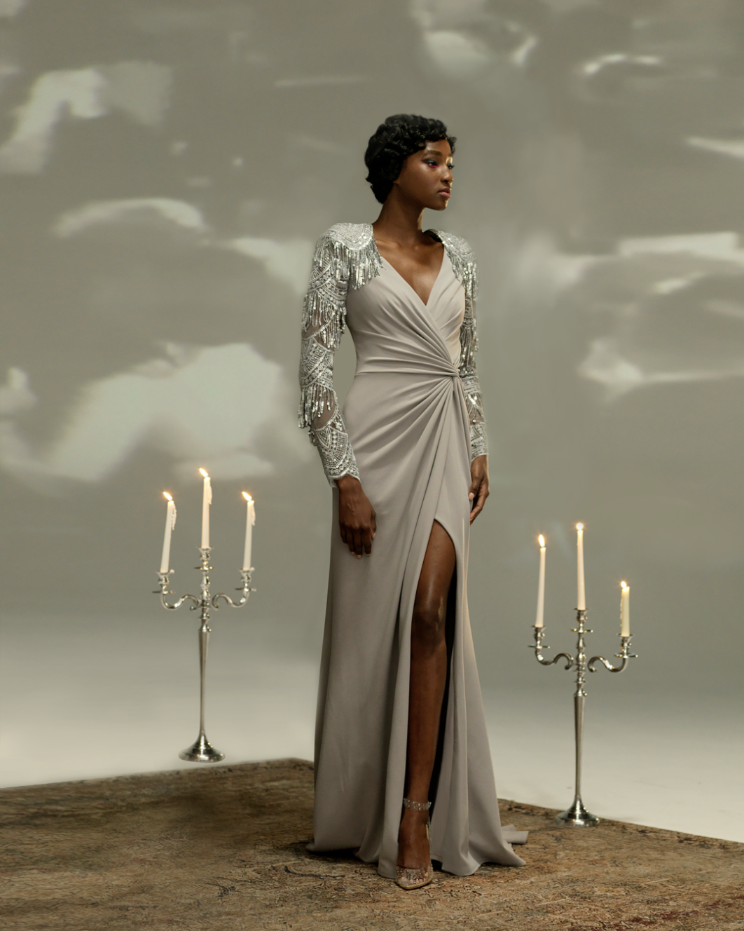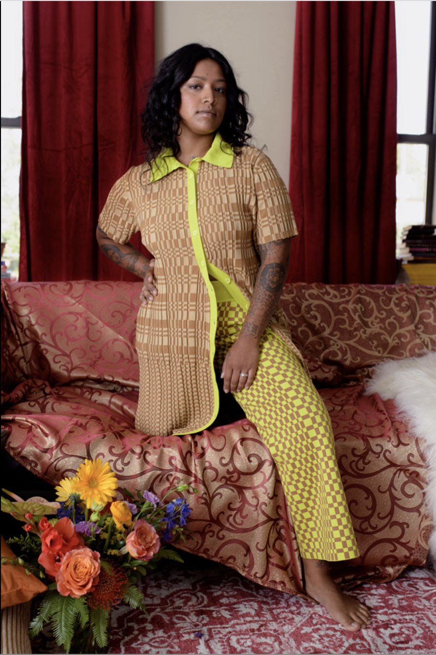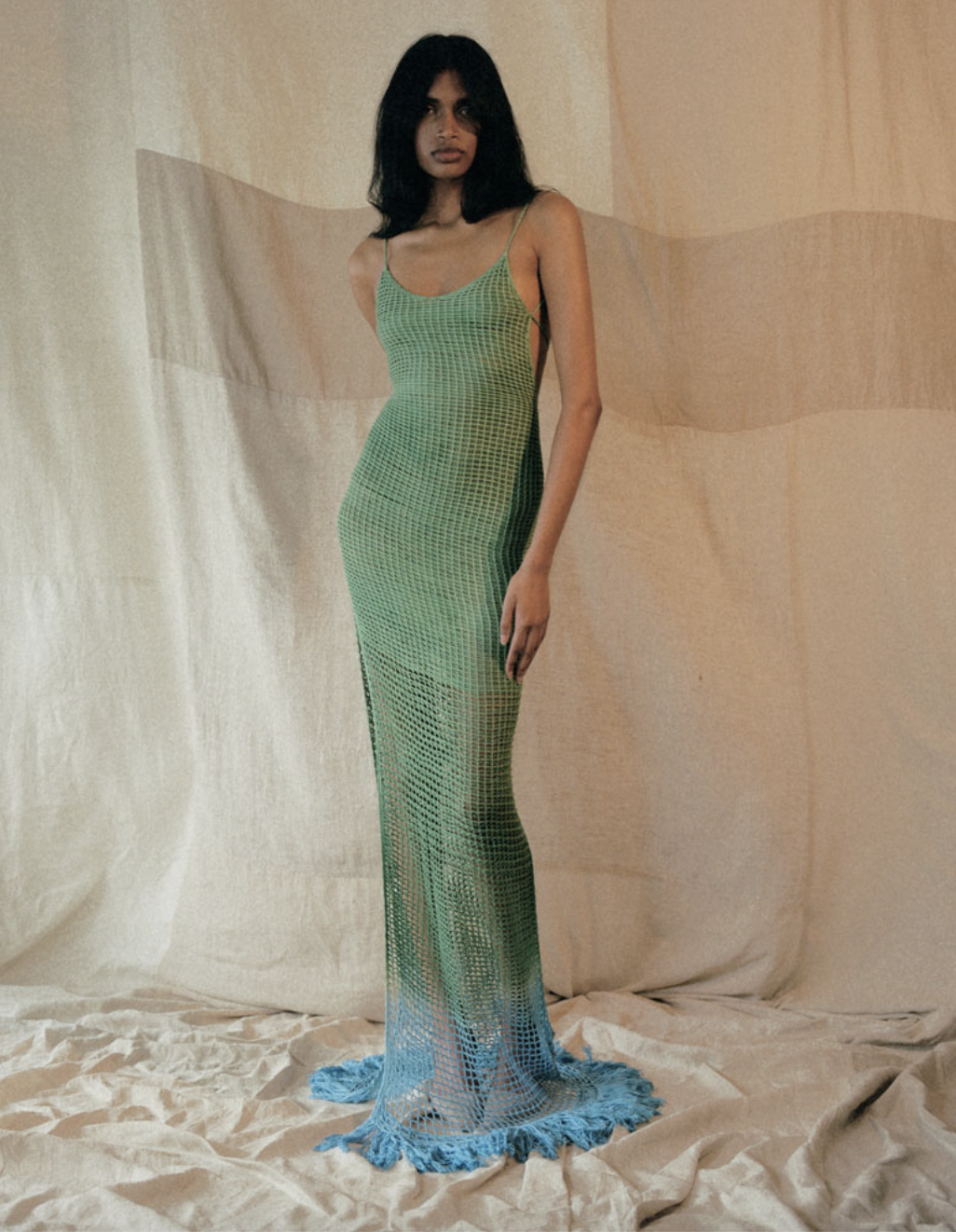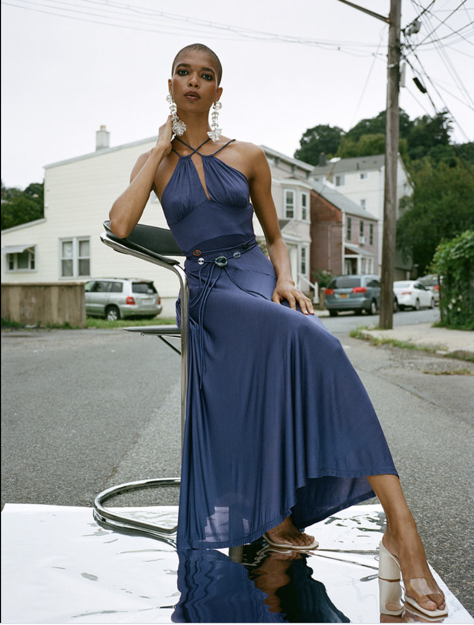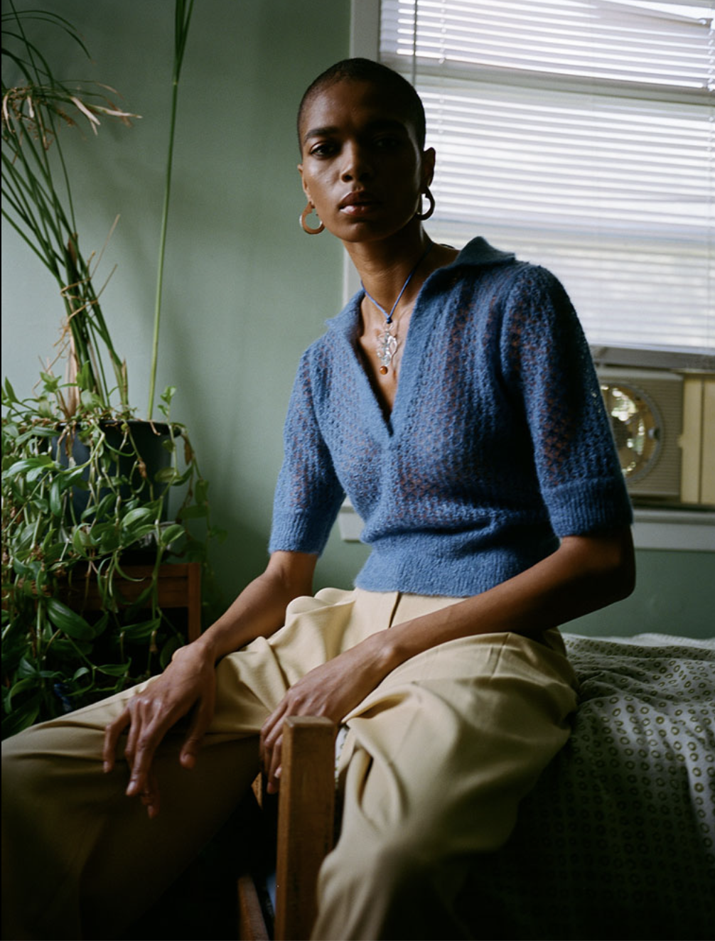 色彩中暗流涌动的情绪氛围在时装上得以进一步彰显。例如,MAIDE NAME就在针织衫、连衣裙和套装上演绎了不同深浅的蓝色的多面性,让你可以在同一个模特身上看到优雅、坚毅、随和等不同魅力点。