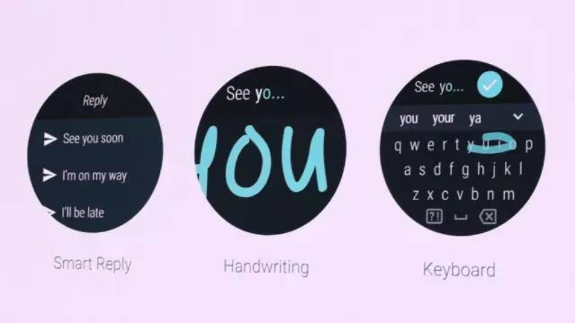 Google 为了解决在智能手表小屏幕上的输入困难问题,在原有语音识别和 emoji 的基础上,增加了智能回复,手写输入和支持滑动输入的全键盘。或许在手表上打字的需求真实存在,不过当我看到下面这张图,真的很揪心。