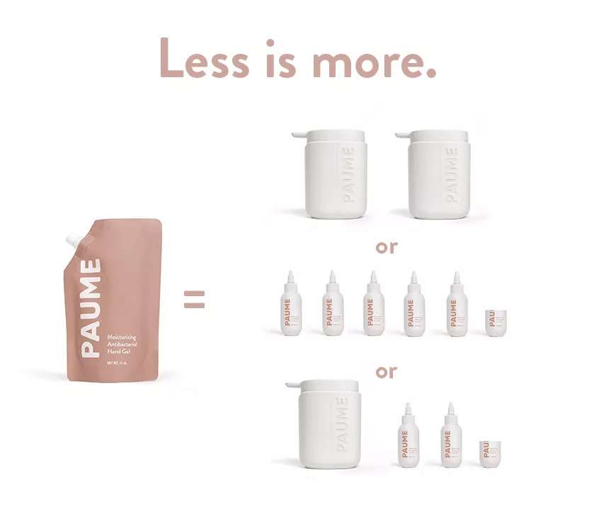 PAUME目前所推出的产品是免洗洗手液,分别是家庭装、旅行装与补充装,产品都可重复灌装多次使用,产品售价在14-56美元之间(RMB90-362元)。