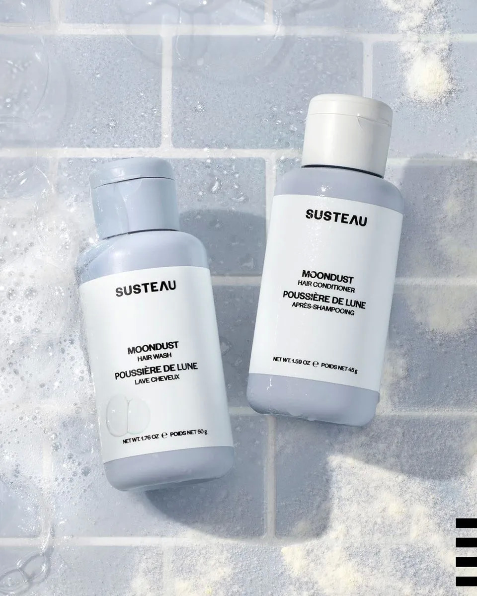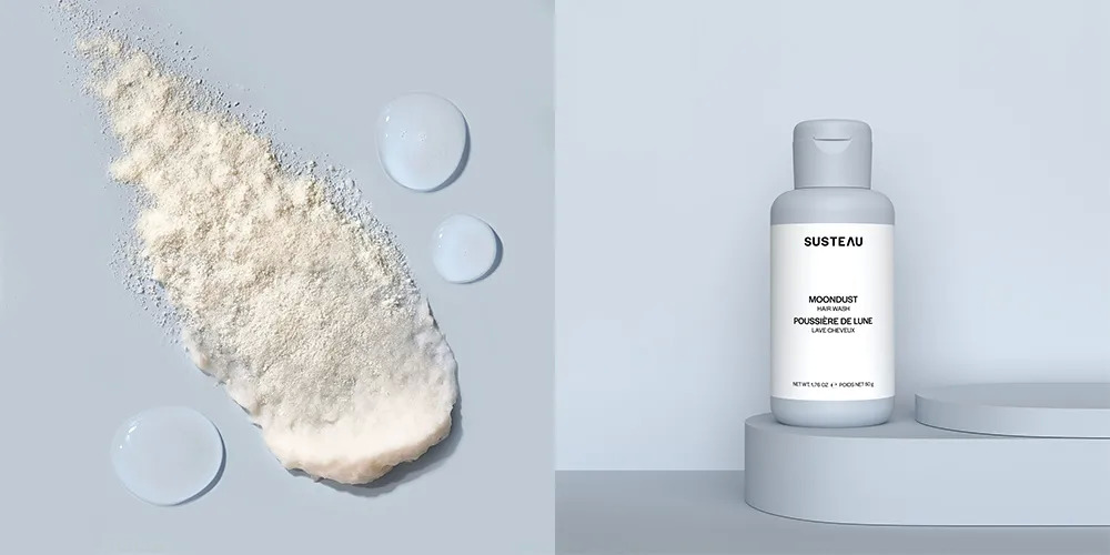 Susteau目前所推出产品为无水洗发水和护发素,售价为29美元(RMB187元)。粉末状的产品加水激活后即可成为液体洗发水,比如品牌所推出的Moondust 护发素在加水后可在几秒钟内转变为乳脂状护发素。这款护发素的成分包括植物性大米蛋白、芦荟、乳木果油和角鲨烷。