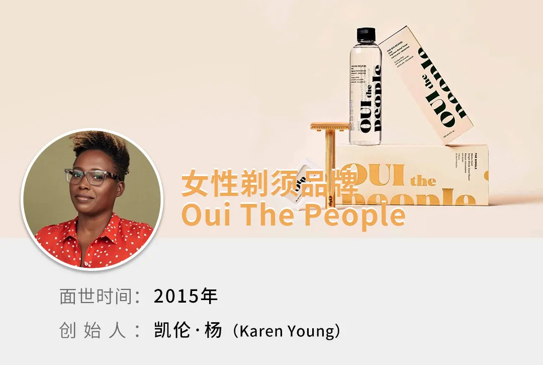 2015年,纽约创造者奖(New York creator Award)的18万美元(RMB116万元)奖金由凯伦·杨(Karen Young)拿下,她创立了专注于安全剃须刀的女性剃须品牌Oui The People。这个女性创立的品牌抛弃了廉价的一次性塑料剃须刀,试图以一种更可持续、更耐用的替代品吸引消费者。