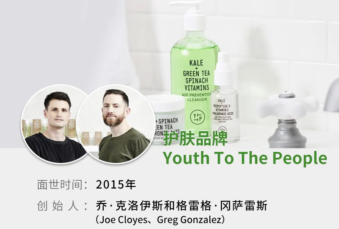 纯素护肤品牌Youth to the People (下文缩写为“YTTP”)总部位于洛杉矶,创始人是一对堂兄弟乔·克洛伊斯(Joe Cloyes)和格雷格·冈萨雷斯(Greg Gonzalez),因为祖母的影响,他们从小开始就接触了美妆行业。