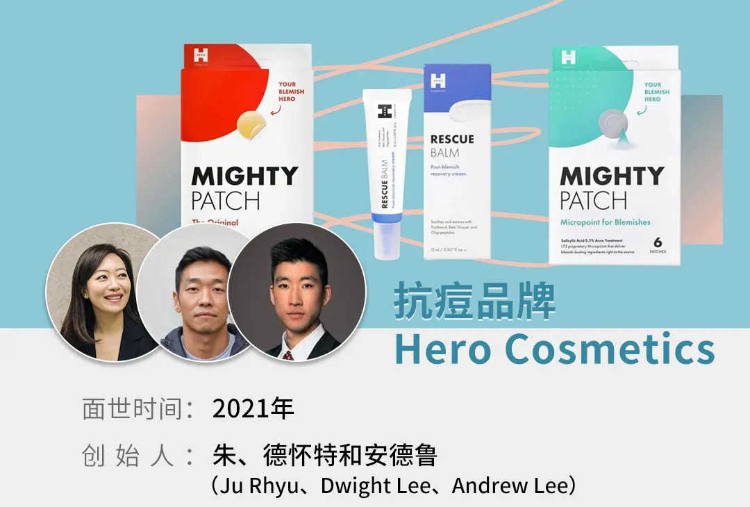 抗痘品牌Hero Cosmetics由Rhyu、Dwight Lee和Andrew Lee于2017年创立,但品牌增长迅速,据称2020年其销售额增长了300%,预计2021年零售额将超过8000万美元(RMB元5.1亿元)。