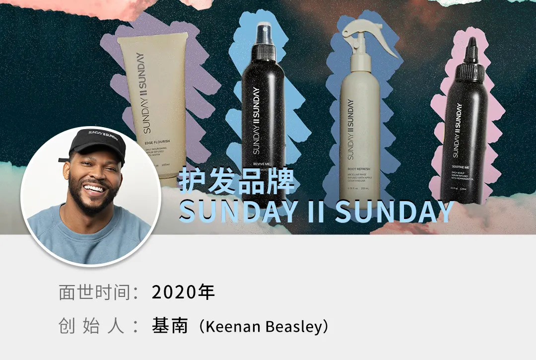 护发品牌Sunday II Sunday由基南(Keenan Beasley)于2020年春季正式推出,为满足黑人社区典型护发习惯的产品需求而诞生,目标是填补护发领域的空白。