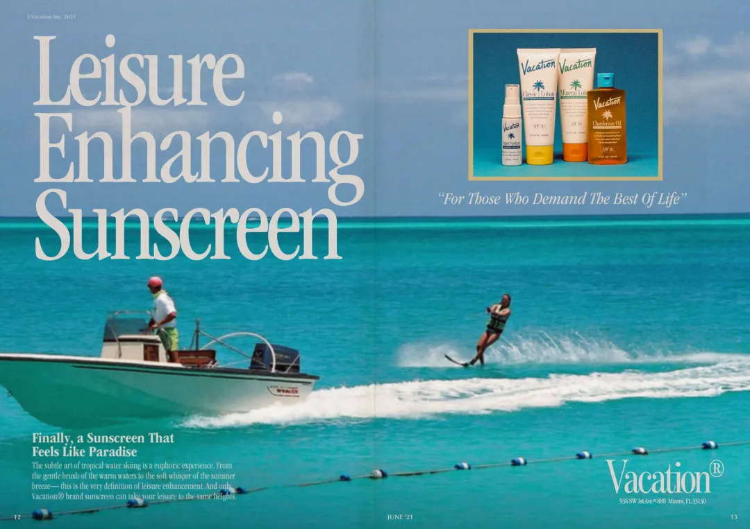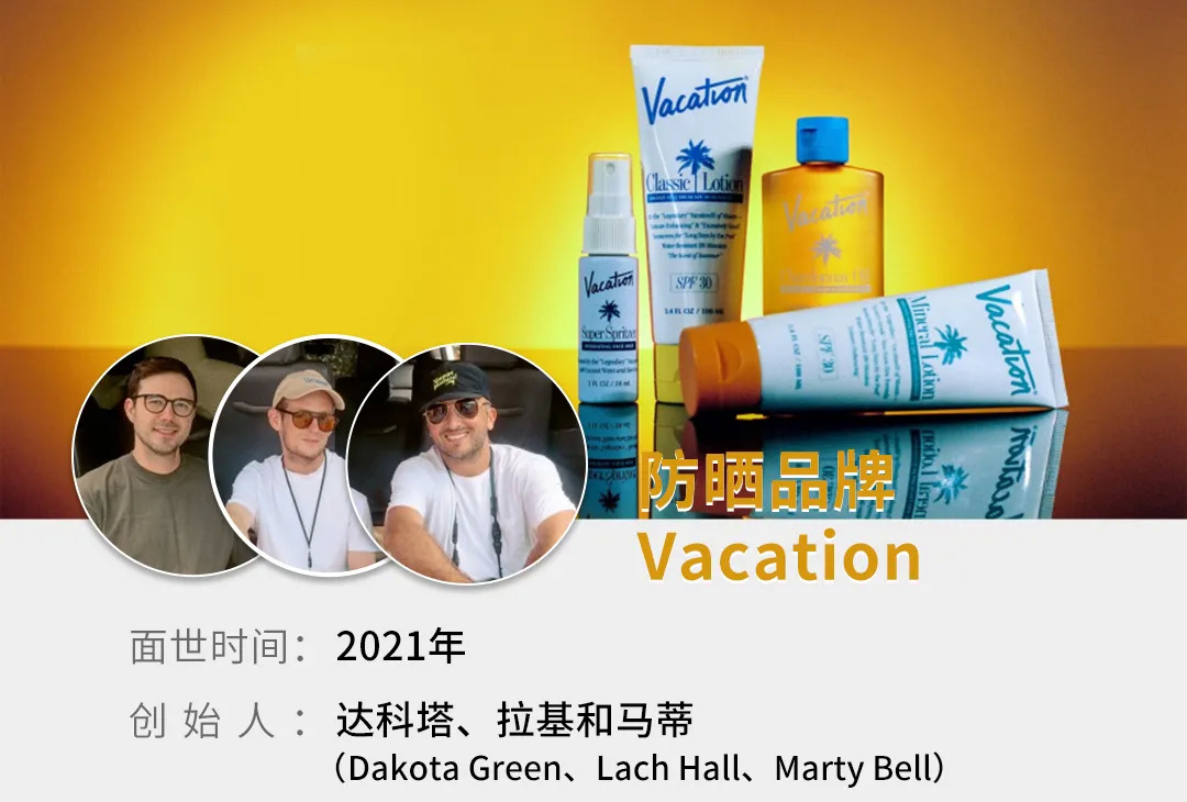 Vacation与通过认证(Board-certified)的皮肤科医生兼皮肤癌基金会副总裁 Elizabeth Hale 博士共同开发了配方。品牌标志性的带有椰子和香蕉香气的防晒香氛则是与美国小众奢侈香氛品牌ARQUISTE Parfumeur共同开发的。
