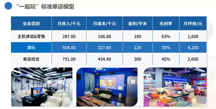在新店已有的基础上,创梦天地仍在不断迭代其单店模型,且已取得成效:将300平米的标准单店模型数据拆解来看,门店主机零售及体验部分的月收入目前达到28万,毛利率为63%,月坪效为1600元/月。潮玩业务部分单月收入约50万,月坪效达到4200元/月。单店每个月的总收入能达到79万,毛利率45%。