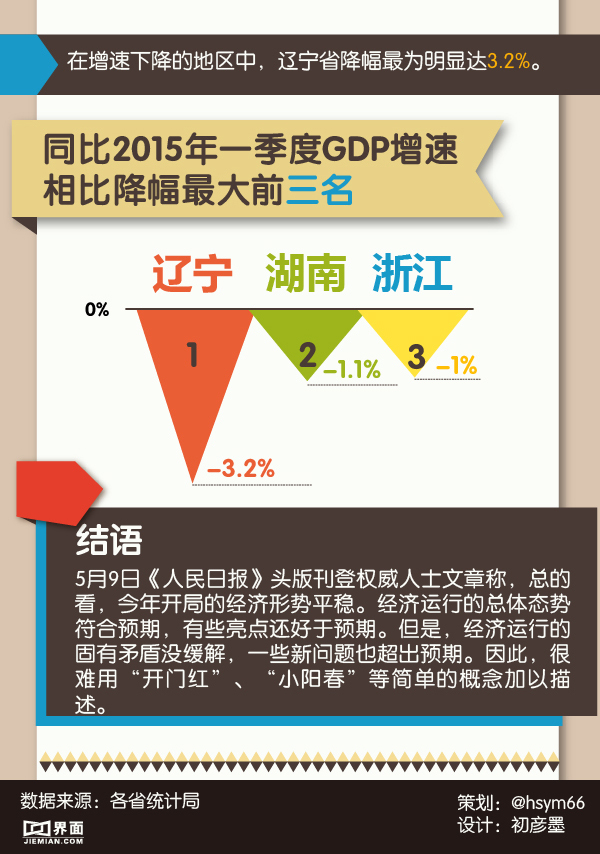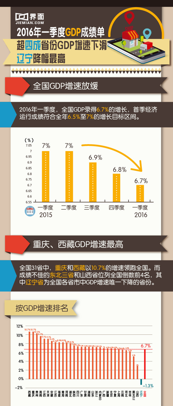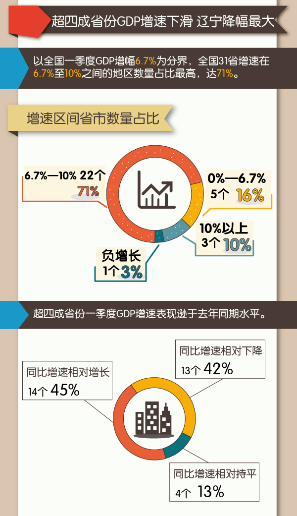 【图解】2016年一季度GDP成绩单:超四成省份GDP增速下滑 辽宁降幅最高