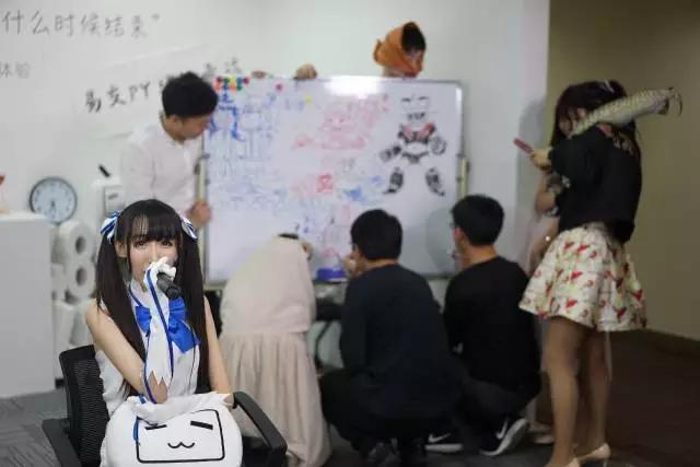 在这里,热情的呼应反而造就了远比所谓成熟社交媒体更有序更具备「文明」特征的舆论环境。这场无聊直播中,B站各路UP主、主播轮番乱入,动漫歌曲、宅舞、cos、乐队演出、沙画、Talk Show……等等,在漫长的无聊中,居然构成了无意识的一场这个领域中各色文化的大总览(甚至它的辐射力开始渗透进3次元世界,当红舞台派喜剧团体开心麻花的常远、艾伦今晚参战,是一个有趣的现象)。