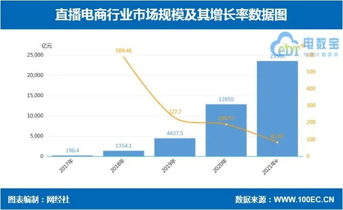 与此同时,该报告预计2021年交易规模达到23500亿元,同比增长82.87%。由数据上来看,电商直播市场的发展前景是蛮广阔的。