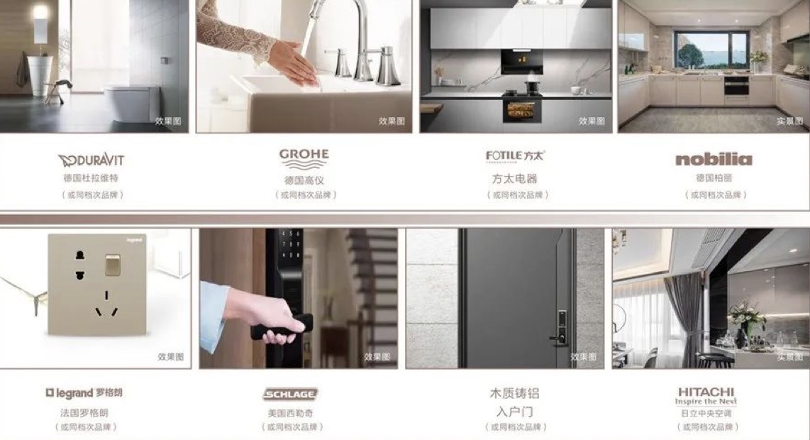 项目装标选材依然甄选国际一线顶尖品牌,如德国杜拉维特洁具(建材家居城马桶市场报价基本都在6.5万元/套左右)、德国柏丽橱柜(建材家居城市场最高报价接近13万元/套左右),装标品质可以说是相当奢华。