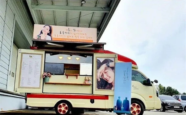 韩国艺人之间,也会用这种方式表达支持。去年5月,曾一同拍摄过《鬼怪》的李栋旭和孔刘,就为女主角金高银送了餐车应援。