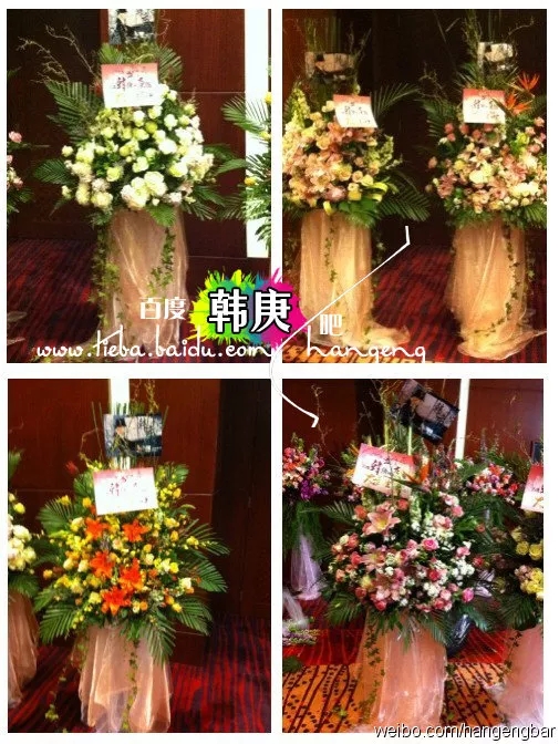 还有一种应援,是直接送给偶像以及参与节目录制的工作人员的。艺人进组、录制节目的时候,粉丝会送花篮到现场,还会在和经纪公司沟通完备的情况下,制作包装精美的食物礼盒送给艺人和工作人员,或者直接送带有艺人图案、立牌的餐车或咖啡车。