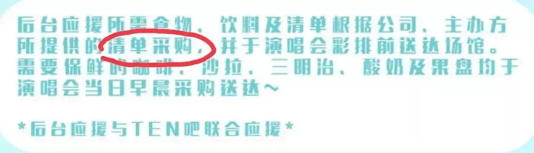 2019年NCT小分队威神V武汉场的见面会中,李永钦和董思成粉丝团联合做出的食物应援包括600瓶矿泉水、648瓶汇源果汁、300桶方便面,甚至还有300条毛巾和电源转换插头、厨房用纸等基本不会出现在应援清单里的日用品,之后有粉丝发现,两家粉丝团的应援报告下写明“所有物品根据主办方提供清单进行采购”。如果粉丝报告所说属实,那么这无疑是将主办方和经纪公司需要承担的成本,进一步转嫁到粉丝的身上。