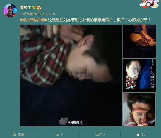 20日,微博大v账号“圈教主”曝光了该疯狂男粉丝的一组照片,照片中他被制服在地,表情狰狞。