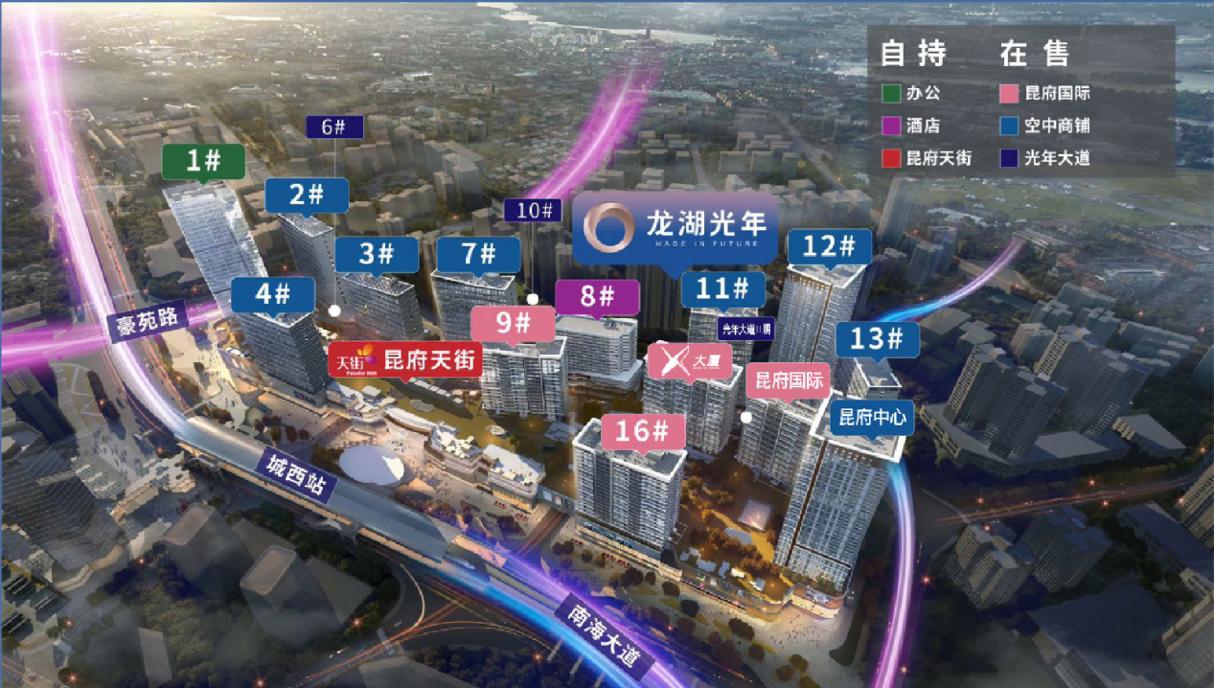 龙湖以115亿元的投资规模打造海南首座超80万方TOD综合体,涵盖了天街、酒店、写字楼等业态,整合约22万方昆府天街(自持)、1#写字楼(自持)、星际酒店(自持)、昆府中心、昆府国际、24小时夜经济示范区、光合总部等7大商务集群,发挥聚合效应,为总部基地提供了更具粘性的商务生活空间。