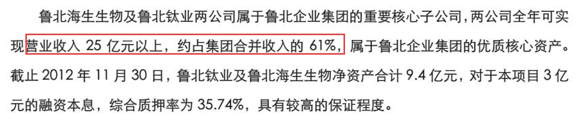 界面新闻记者发现,上述信托计划还曾披露过旗下两家核心子公司鲁北生物和鲁北钛业的营收数据,两家企业分别主营氧化铝和钛白粉生产,其中鲁北钛业为国内规模较大的钛白粉生产企业,鲁北集团分别持有上述两家企业的100%和98%的股份,信托推介书里表示“鲁北生物和鲁北钛业为鲁北集团重要核心子公司,两家公司全年可实现营业收入25亿元,约占集团合并收入的61%”。