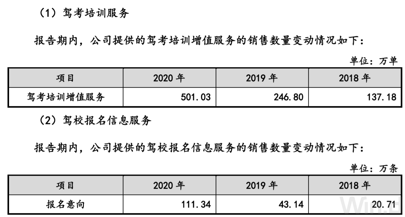 上述数据可以看出,驾考培训的增值服务以及报名意向在近三年中都呈现出稳定增长,尤其2020年,两项数据增速均大于100%,这保证了2020年学车业务的强势表现。不过之后能否维持这种暴增态势,无法通过数据进行预测。