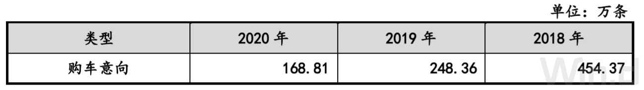 具体拆分来看,2019年业绩下滑主要原因是由于汽车导购业务以及互联网广告业务的业绩下降所致。对此,木仓科技解释称,自2018年三季度起,受车辆购置税优惠政策退出、国五国六环保标准切换、宏观经济增速回落等影响,汽车整车销售市场开始下降,汽车厂商品牌广告投放意愿下降。招股书中,近三年购车意向的数据十分直观的反应出了当前市场需求情况。