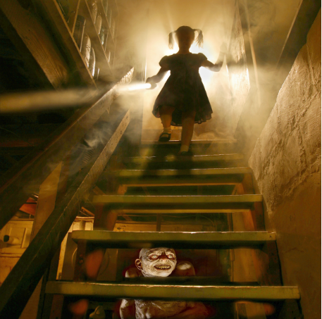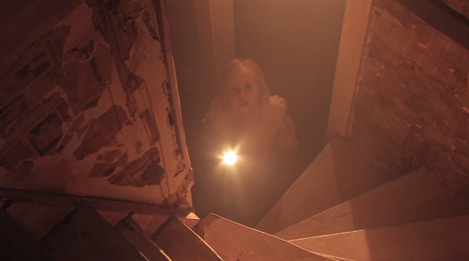 小Chloe 拿起抽屉的手电筒,沿着悉悉索索的声音继续追踪下去,爬上了高处的阁楼: