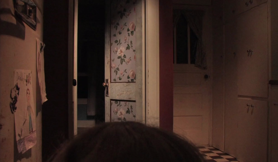 深夜,小Chloe 独自一人坐在沙发上看着动画片,忽然门口有个黑影一闪而过: