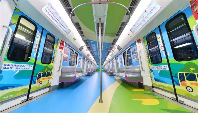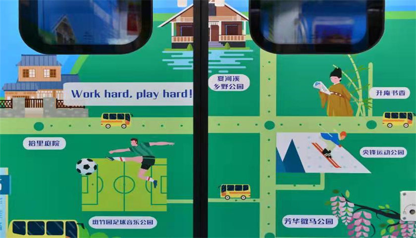 列车设计方面,“香城号”以年轻人喜闻乐见的“手绘+实景”风格为主,采用扁平化的时尚设计、清新雅致的色彩,让乘客走进主题列车就能感受到新都区“珠链锦绣”的特色。“听着音乐去滑雪,喝杯咖啡踢足球”“放空,就是一种放松”“日常‘城会玩’×周末‘村会耍’=成都休闲生活”……车厢内随处可见的“接地气”趣味话语,引人注目。