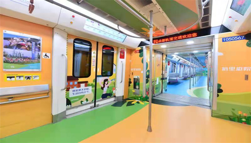 9月13日,新都区联合成都地铁打造的“香城号”社区旅游主题列车正式“登陆”成都地铁5号线。该列车以新都区乡村振兴代表项目“珠链锦绣”为主题,北起新都,南至双流,市民乘客乘坐地铁5号线至终点华桂路站,换乘香城乡巴,即可无缝衔接抵达“珠链锦绣”景区。