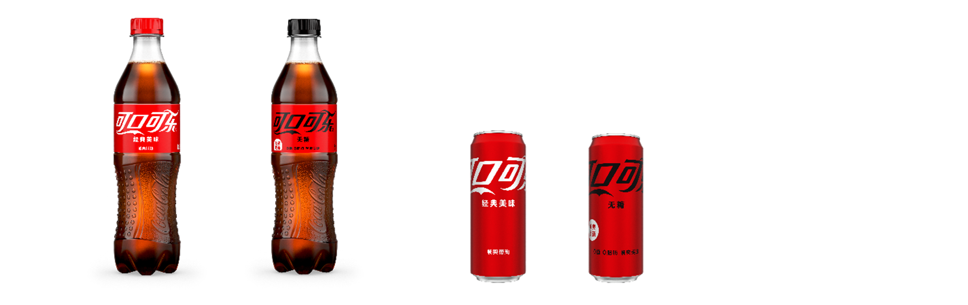 眼下,这个百年经典再一次升级焕新——它大胆地取消了包括飘带在内的部分视觉元素,同时将可口可乐标志上移,瓶身局部留白,迎合现代消费者更为追崇的简化主义设计风格。经典版本的可口可乐延续了之前的红底和白色标志的搭配,而无糖可口可乐则采用红底与黑色标志的搭配,丰富了视觉冲击力与陈列效果,可以被消费者更为快速地识别。这是自2016年发布可口可乐公司发布“同一品牌”(One Brand)全球营销策略以来,又一次全球规模的包装升级。