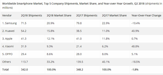 可惜“海纳百川”在商业世界里就是一个童话,华为、小米、OPPO、VIVO每一家都不给自家市场海纳百川的机会。根据市场调研机构IDC发布的最新手机季度跟踪报告显示,中国智能机整体市场出货量在近几年都出现不同程度的下滑,其中国产供应商华为与OV三家都实现了增长,苹果的出货量却在不断下滑。