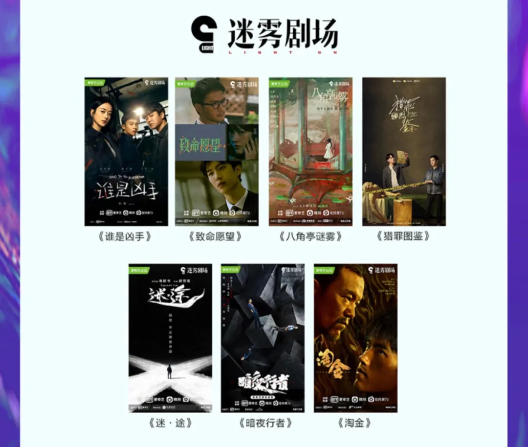 去年名声大噪的爱奇艺“迷雾剧场”将在今年Q4开启第二季,目前有望在本年度播出的有4部作品。分别为赵丽颖、董子健、肖央主演的《谁是凶手》,冯绍峰、范丞丞、文淇共同出演的轻科幻悬疑剧《致命愿望》,金世佳、檀健次主演的《猎罪图鉴》以及廖凡、陈飞宇领衔的冒险悬疑剧《淘金》。