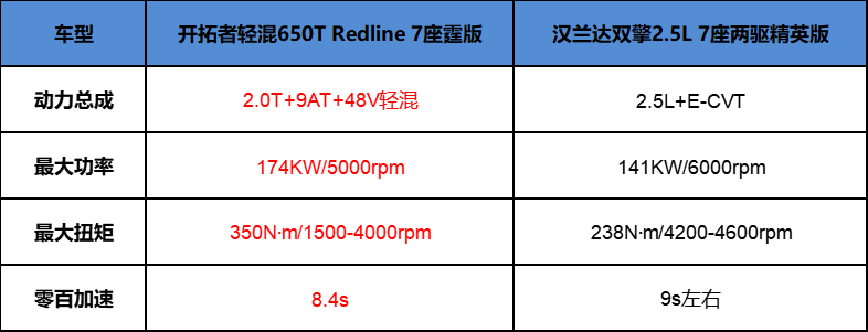 今天,小编就选择30万以内的开拓者轻混650T Redline 7座霆版(售价29.39万)与汉兰达双擎2.5L 7座两驱精英版(售价27.48万)进行对比,孰优孰劣,大家看完便会心中有数。